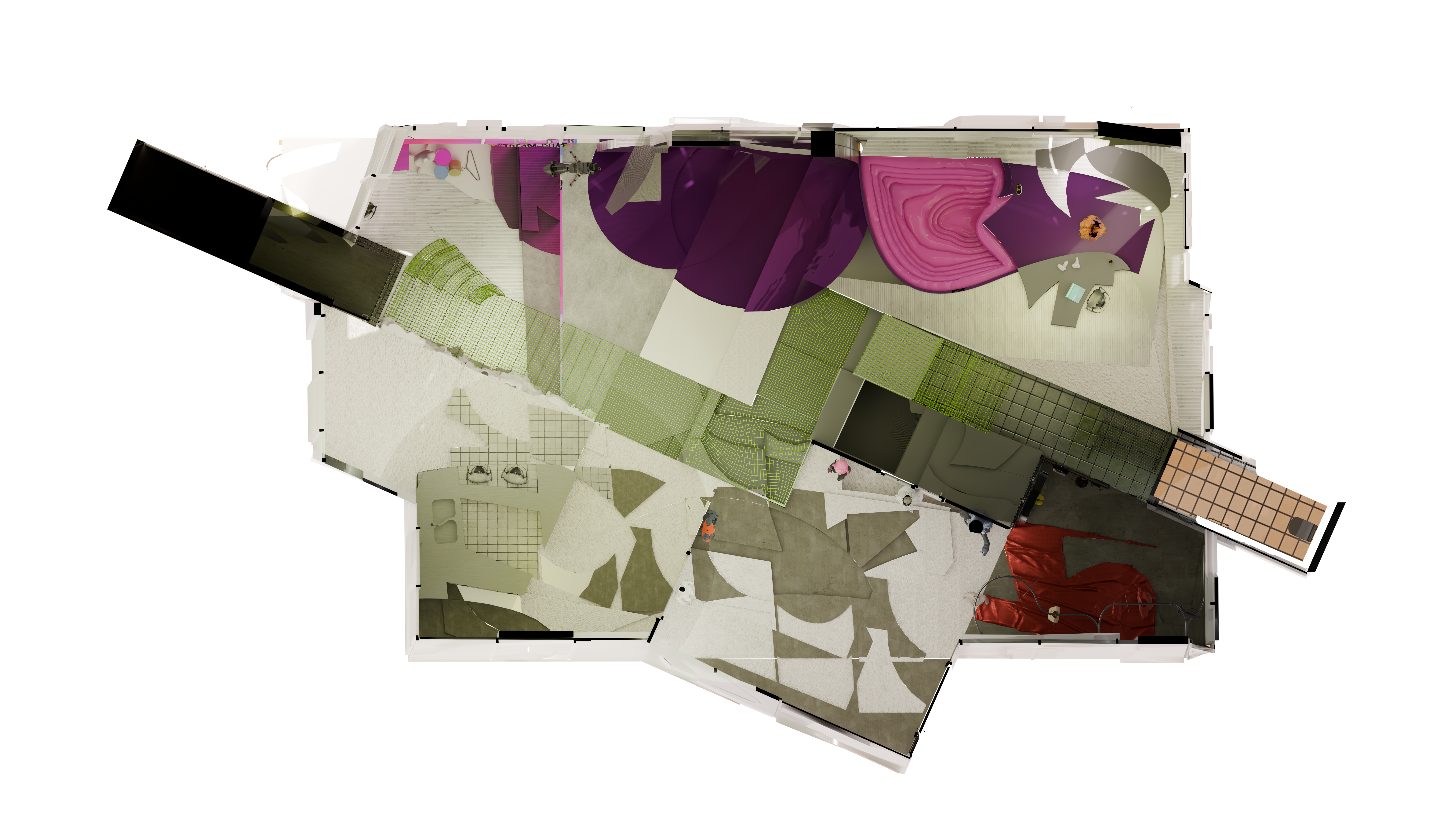 Our design-led research culminated in a series of 1:1 built XR installations. Each one is a fragment of domestic space expanded through collective digital overlays, stitched environments where the physical and the virtual coexist. These are prototypes of domesticity that showcase what happens when home is a shared interface, inhabited by strange collectives shaped around economy, social presence, and sometimes, intimate encounters.